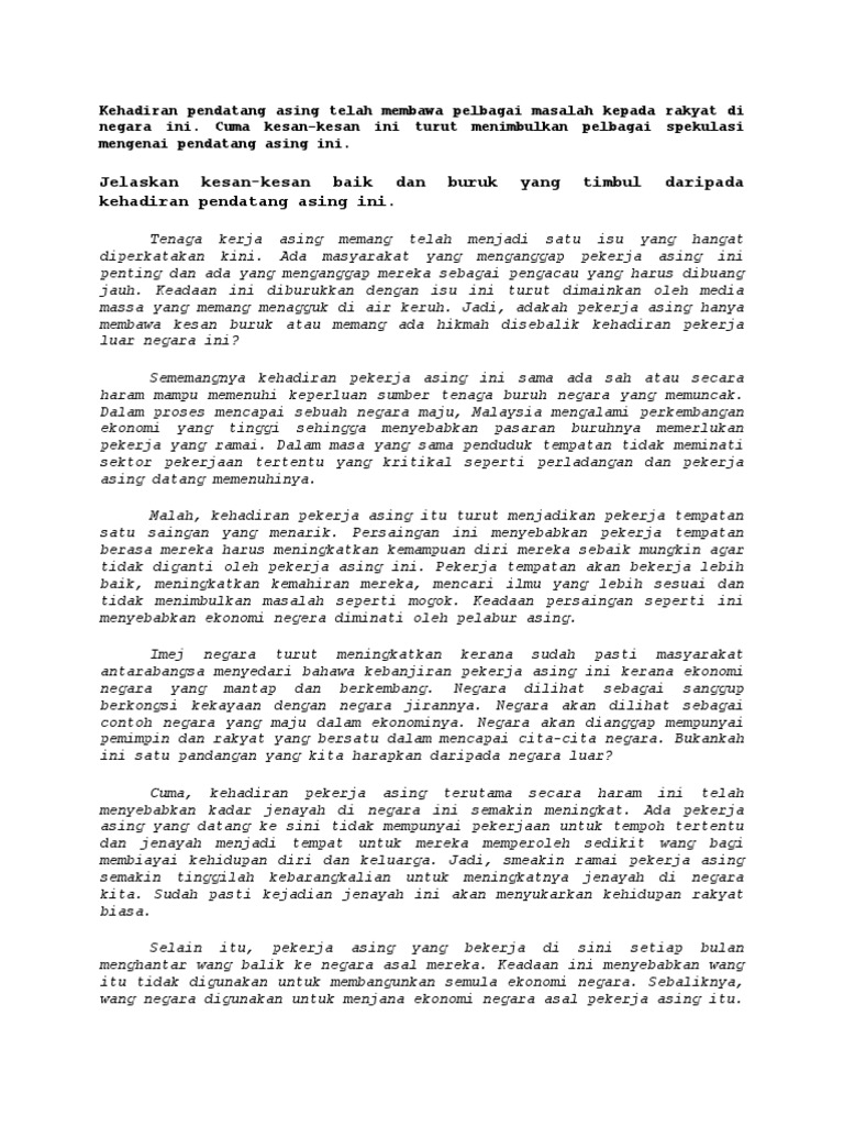 Contoh karangan bahasa melayu bm pt3 tingkatan 1 2 3. National University of Malaysia. Kesan Kemasukan Pendatang Asing dan Langkah-langkah Mengawal Kemasukan Pendatang Asing.